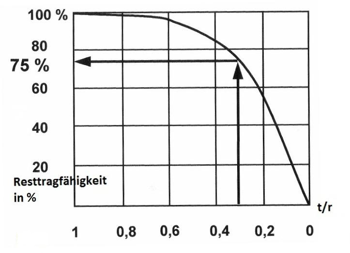 Bei rund 50% Ausmorschung haben Sie ca. 10 % Verlust. Daher braucht man bei Bäumen mit einer Grundsicherheit von
